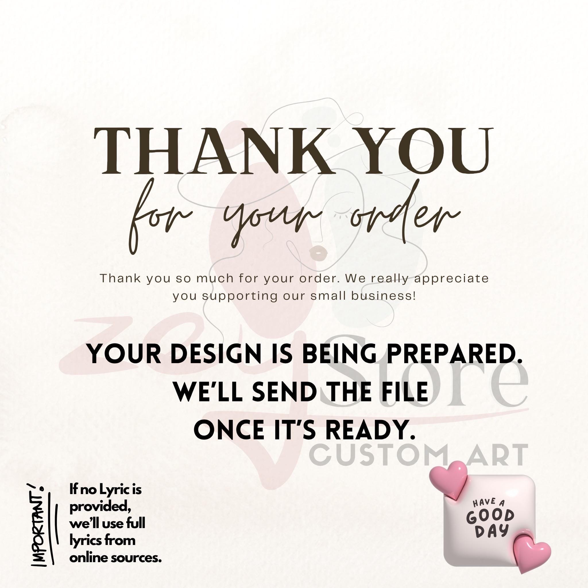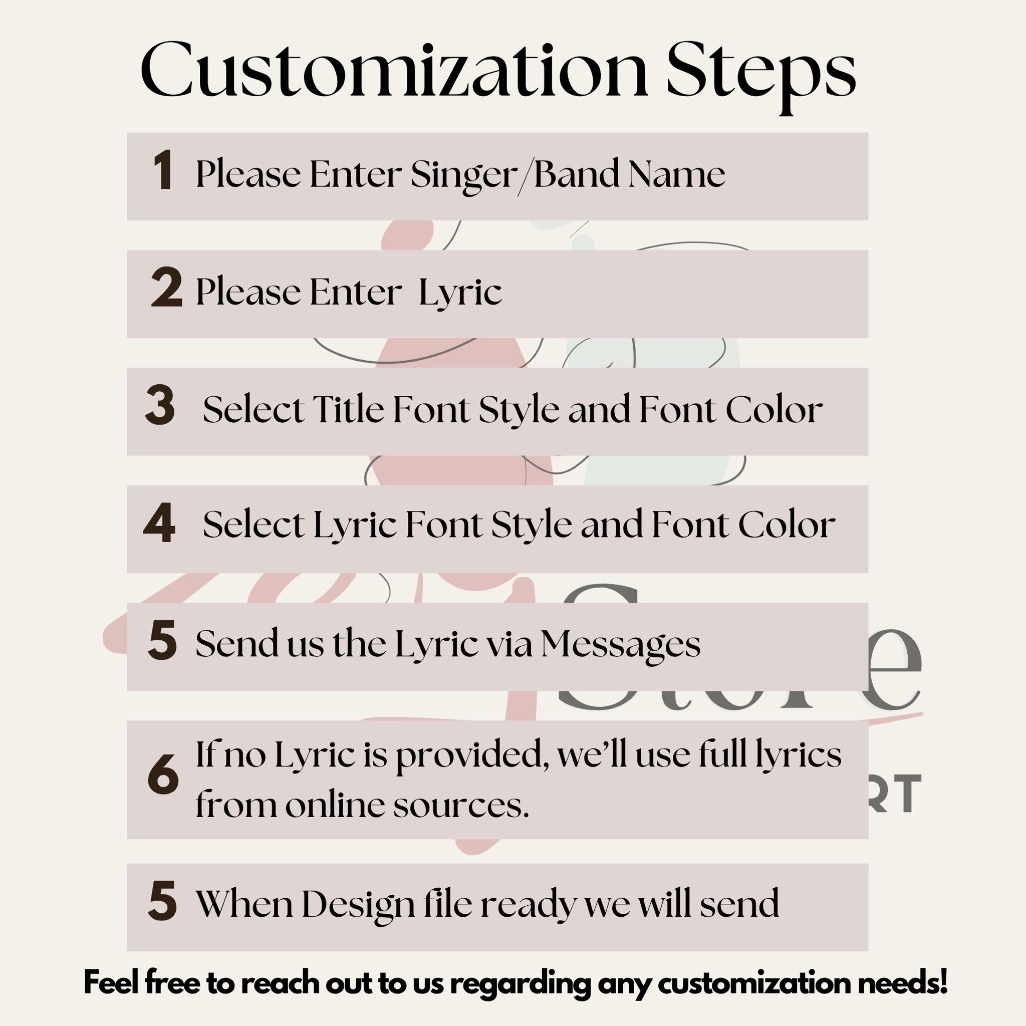 Our shop is dedicated to crafting meaningful personalized designs that celebrate your special moments with care and creativity. We offer satisfaction guaranteed with revisions until you love your custom lyric art.