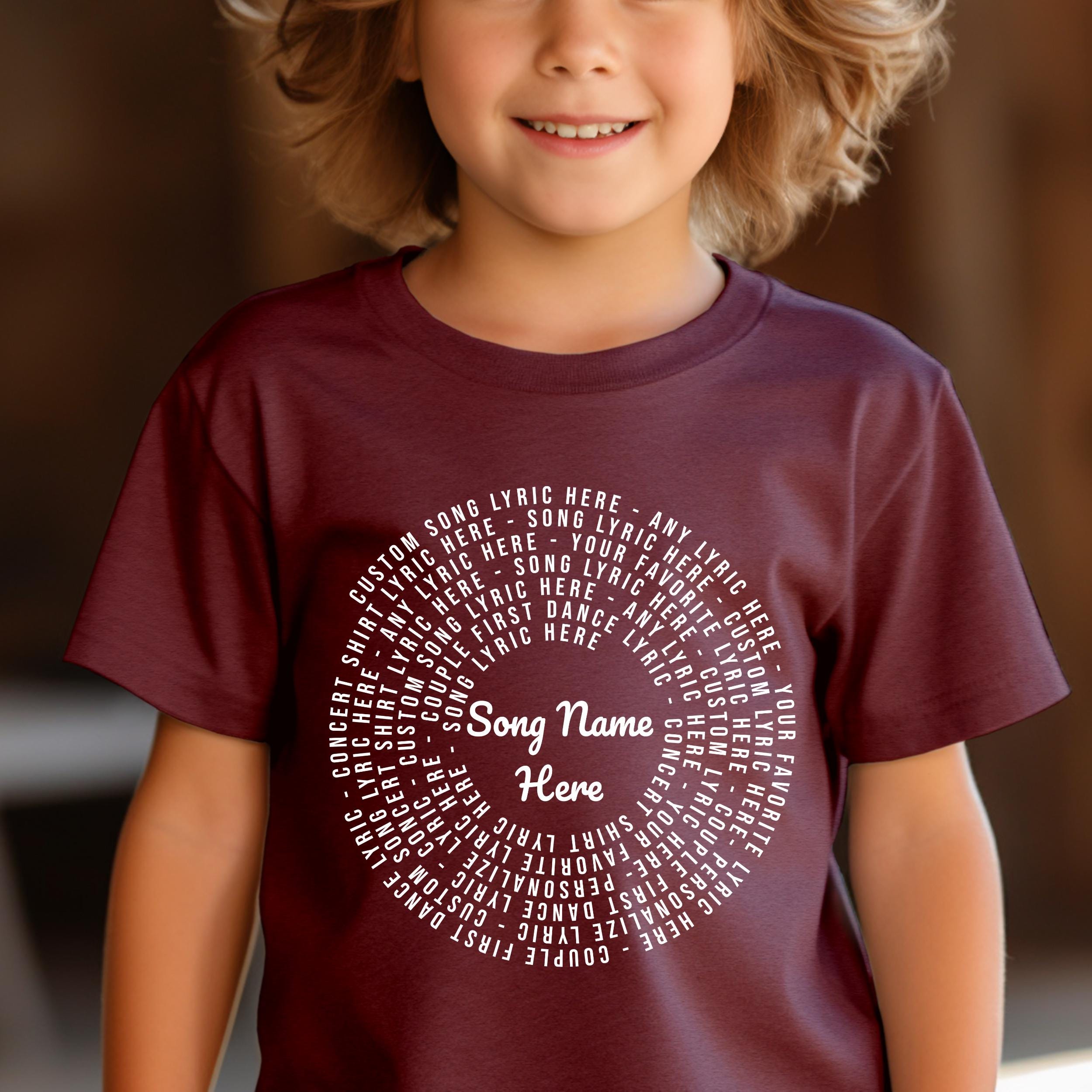 Celebrate your child's individuality with a custom youth lyric shirt that turns cherished music quotes into a timeless fashion statement. Inspired by vintage band tees, this music quote youth shirt channels the energy of concerts and family anthems, making it a perfect gift for any young music lover. Whether at school or a special event, this custom kids song tee blends meaningful lyrics with style and comfort.