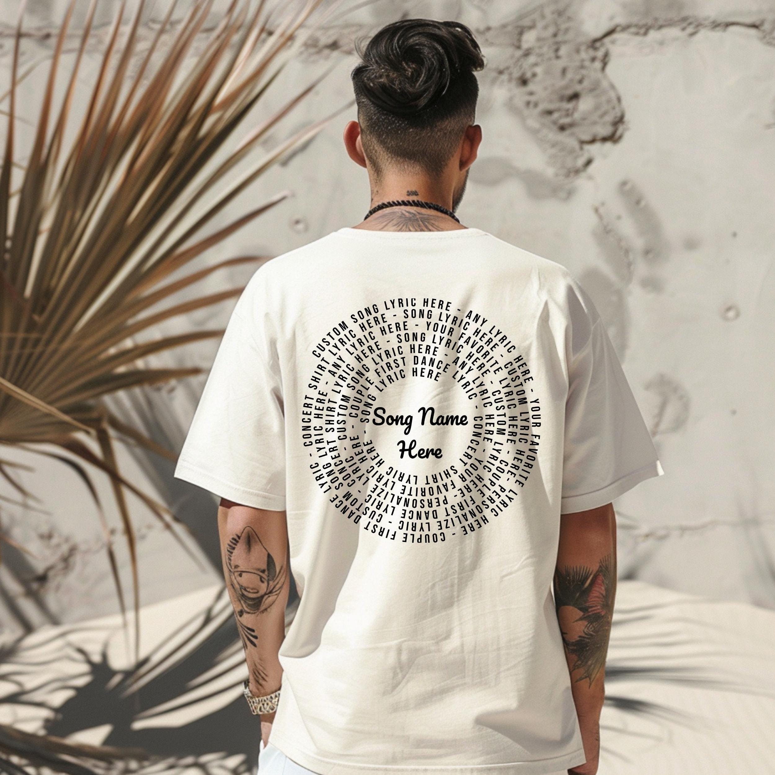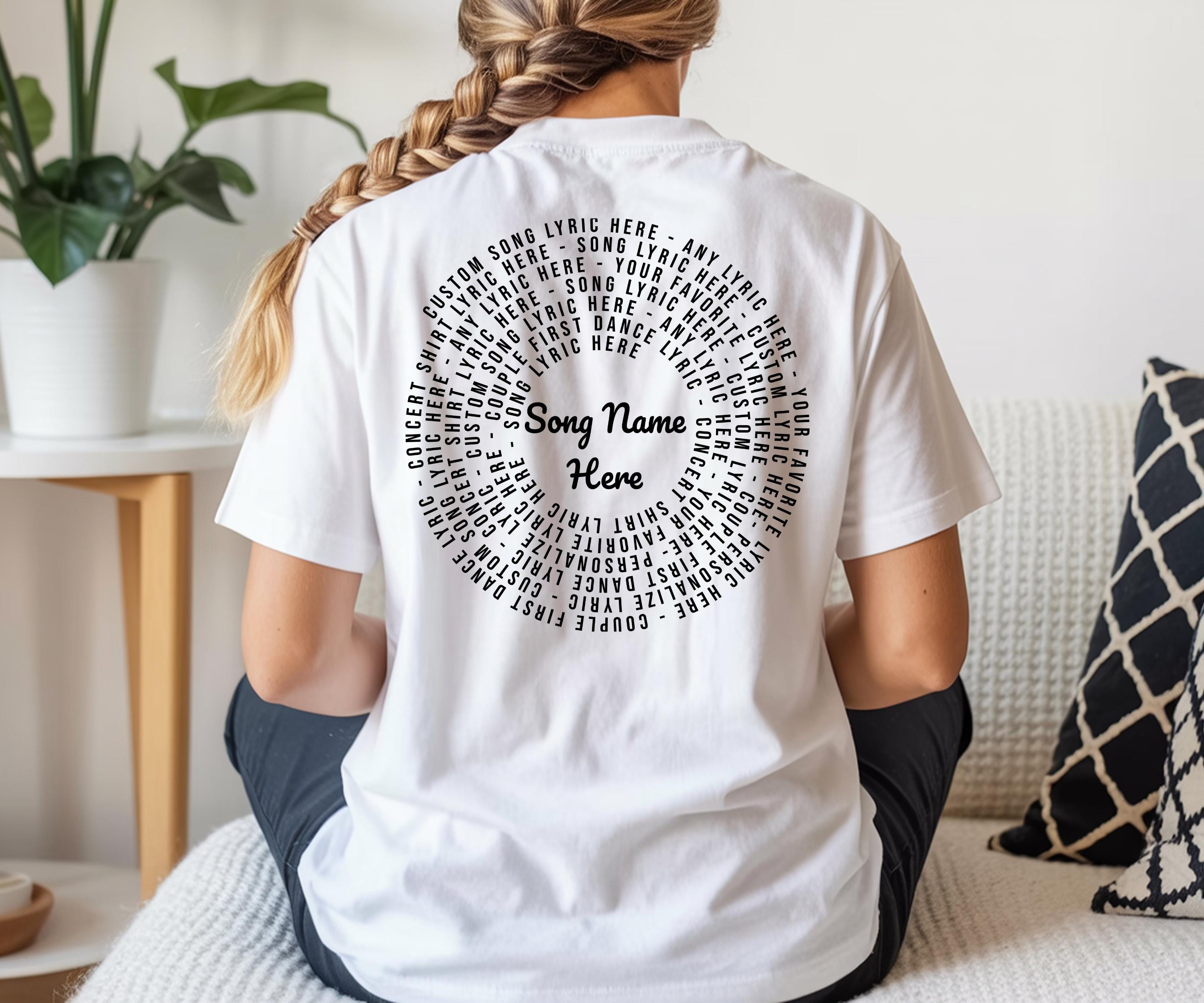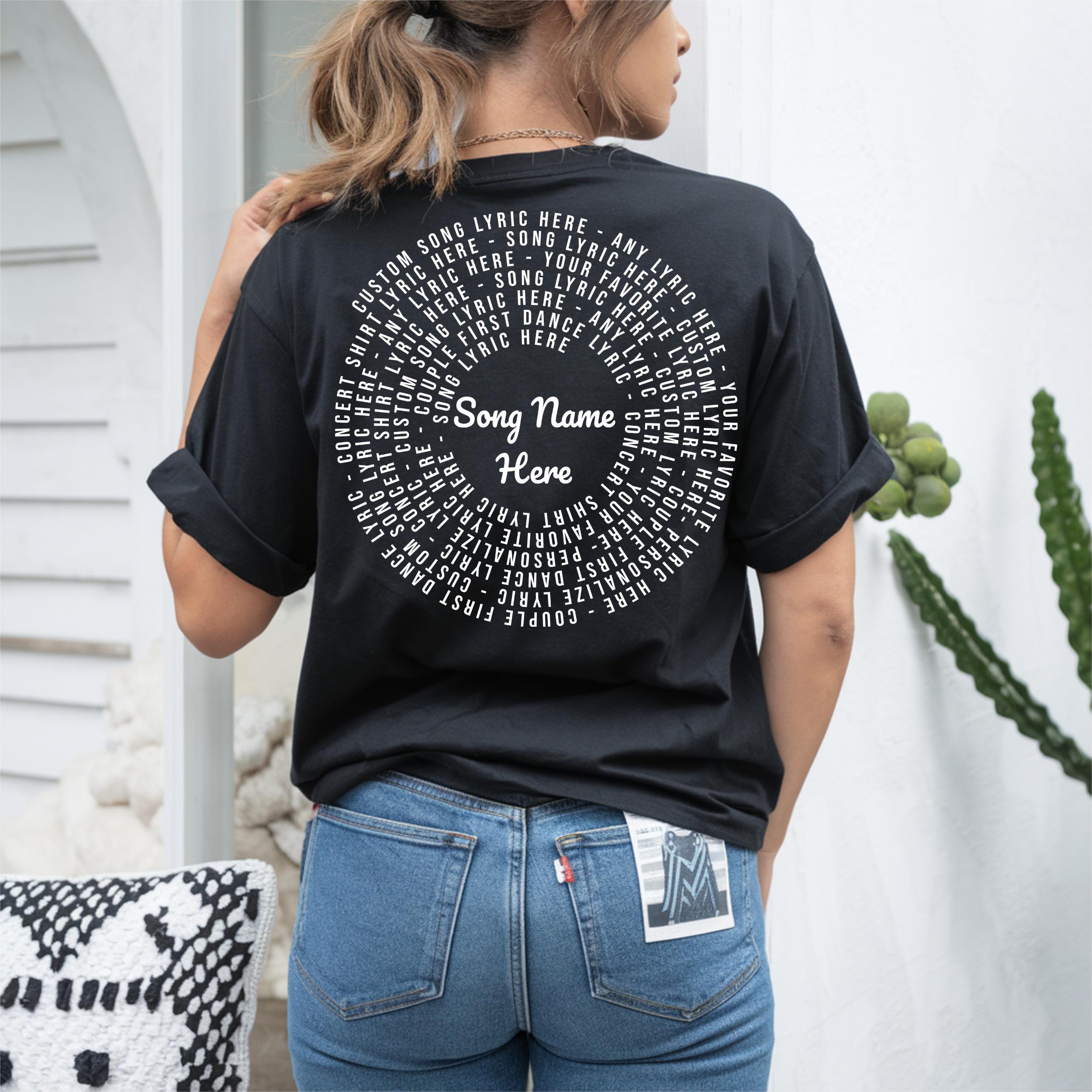 Celebrate your love for music with this unique custom lyric shirt, inspired by vintage band style and designed to showcase your favorite meaningful words. Crafted as a unisex back print tee, it offers a bold and timeless concert-inspired look perfect for music lovers seeking personalized apparel. Whether commemorating a wedding song or simply expressing your passion, this soft cotton shirt brings your story to life with style and comfort.