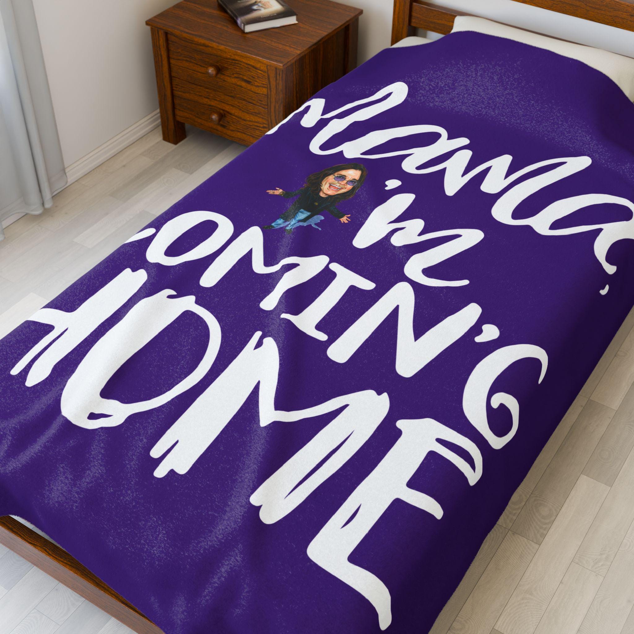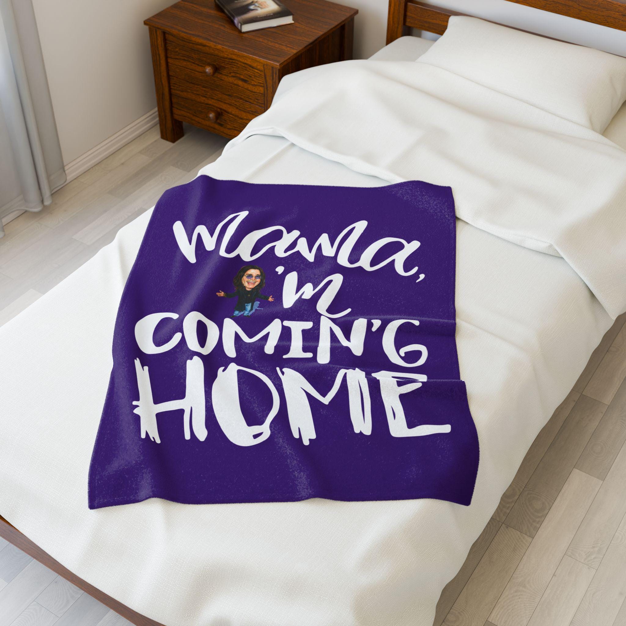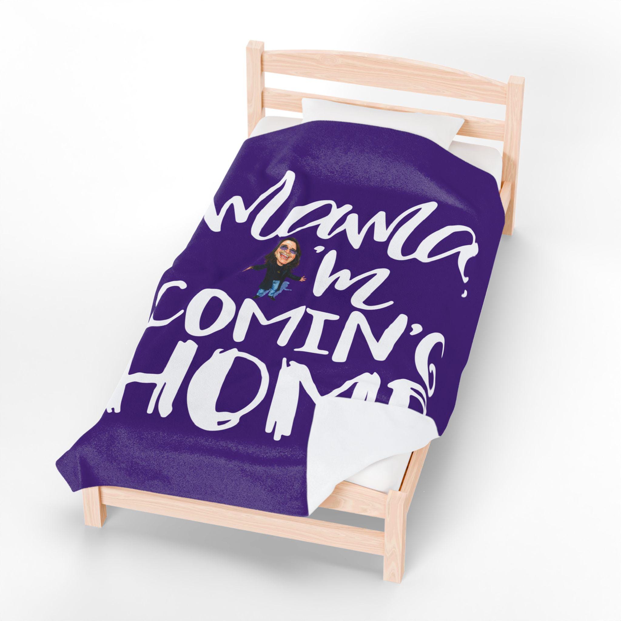 Wrap yourself in legendary rock energy with this “Mama I'm Coming Home” Prince of Darkness inspired velveteen plush blanket, combining bold music-inspired design with luxurious softness and everyday comfort.