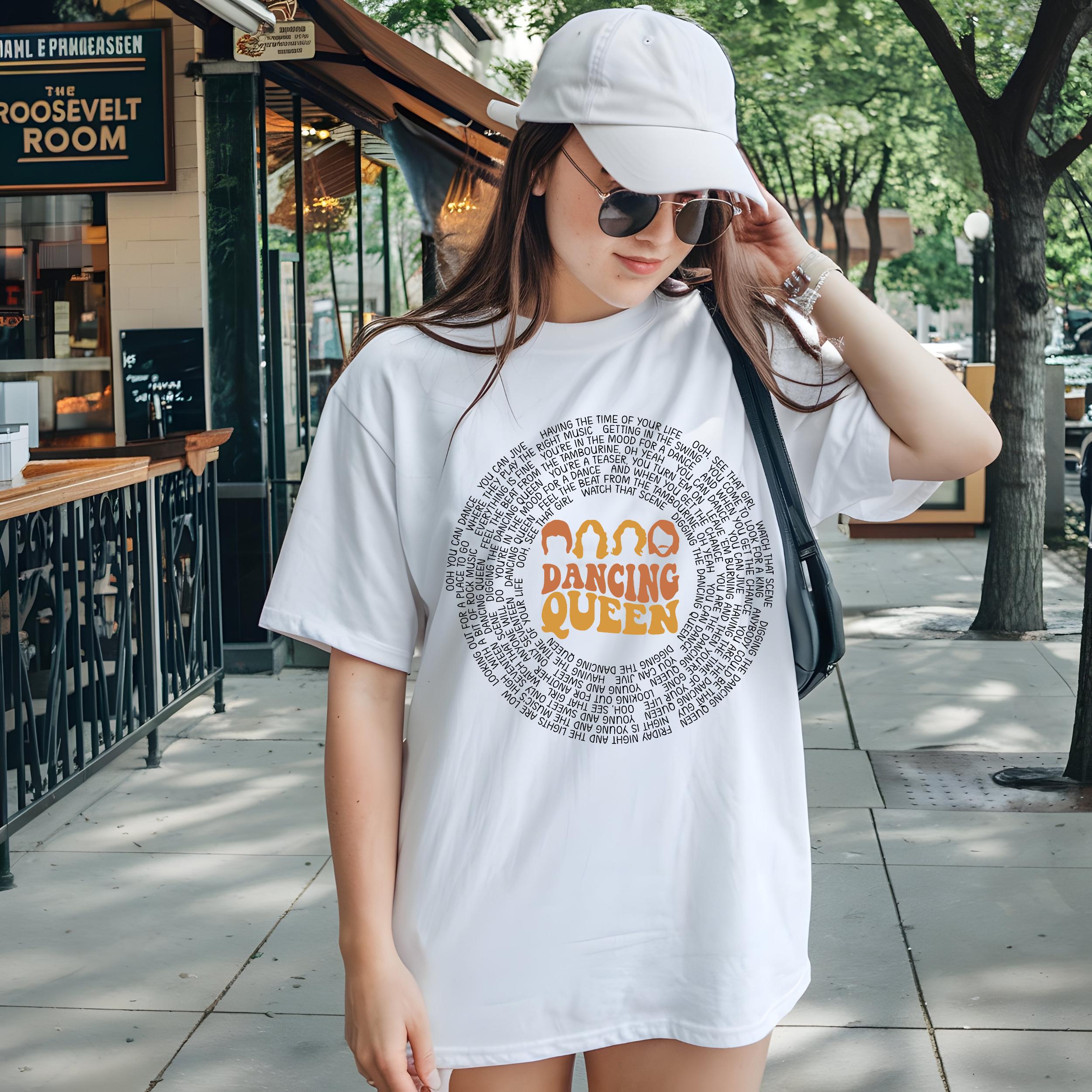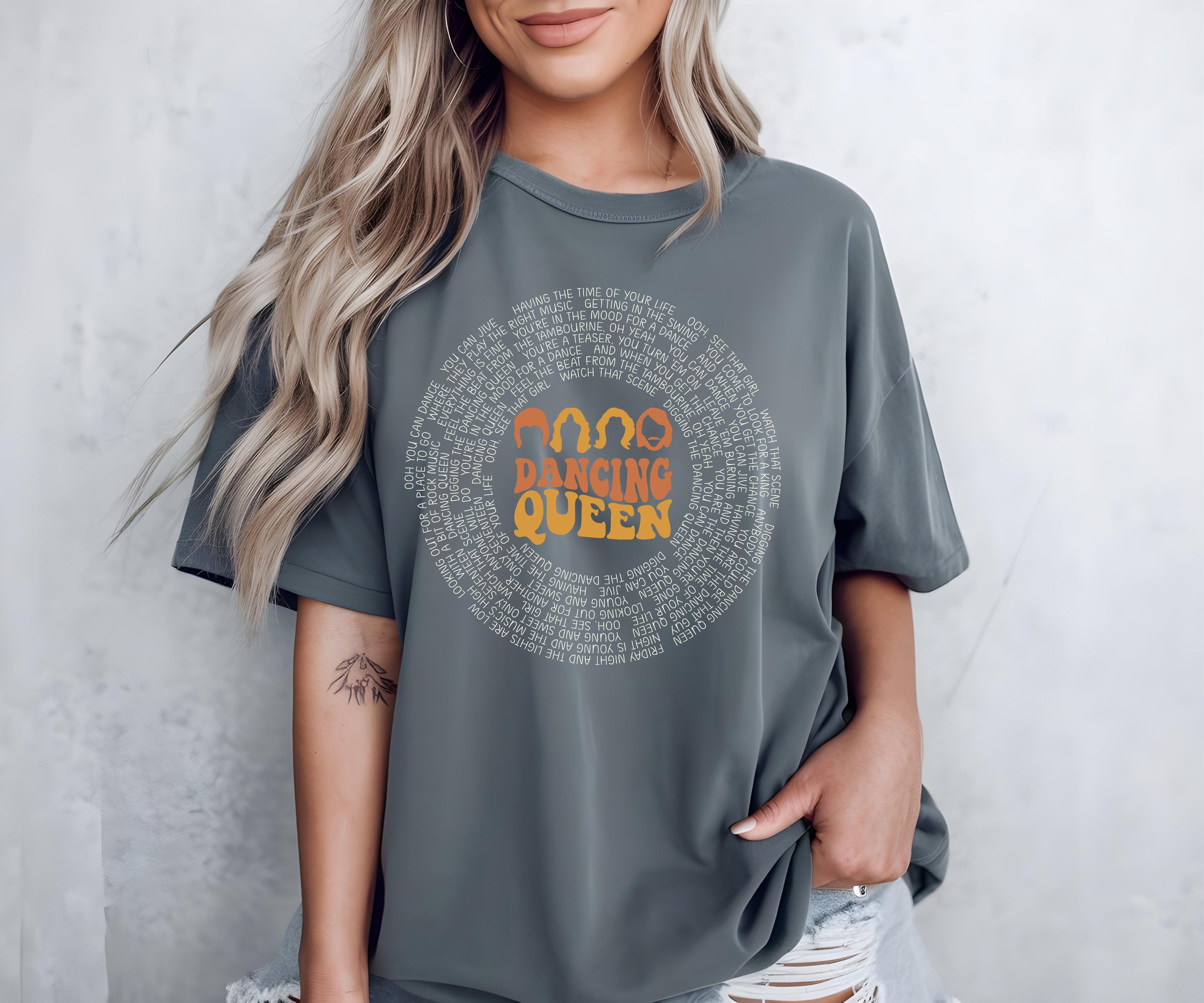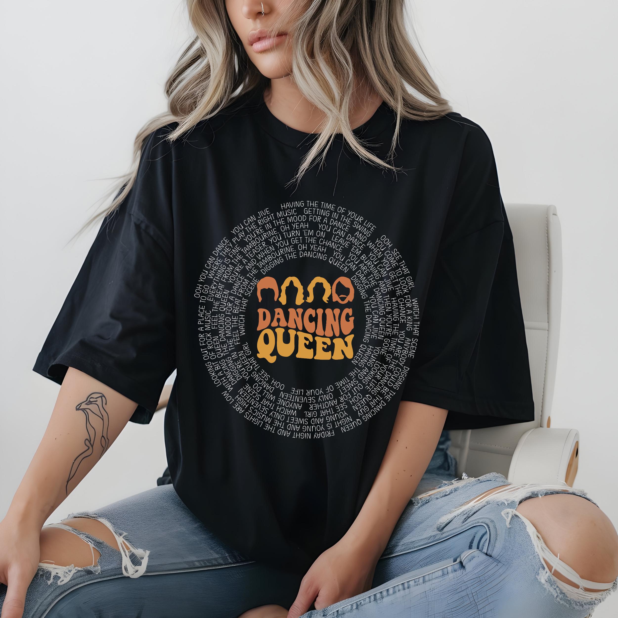 - ✅ Vibrant, fade-resistant Direct-to-Film (DTF) printing showcases the "Dancing Queen" lyrics in an eye-catching vinyl record design