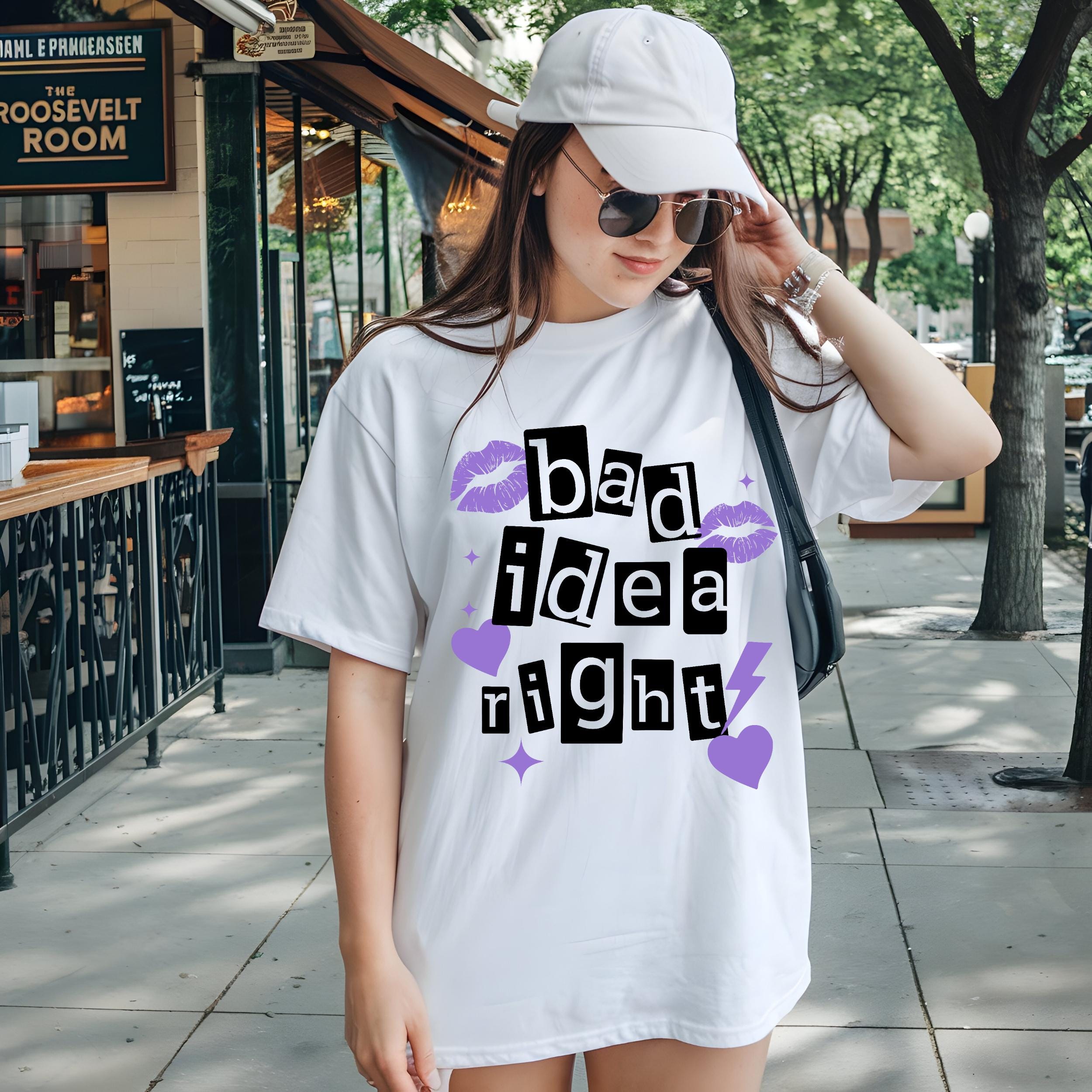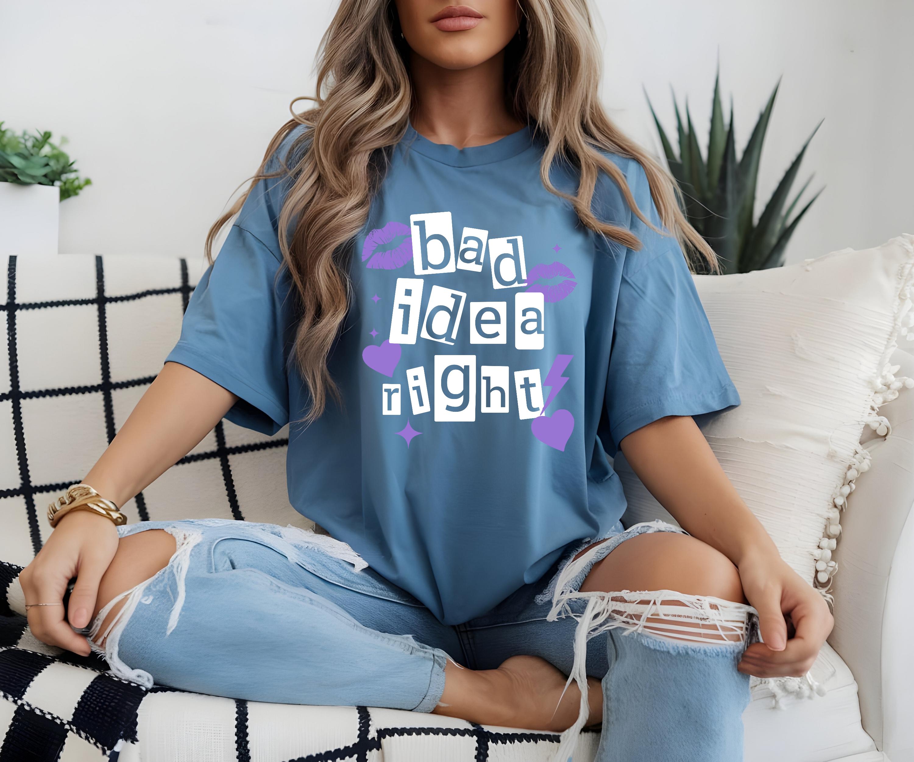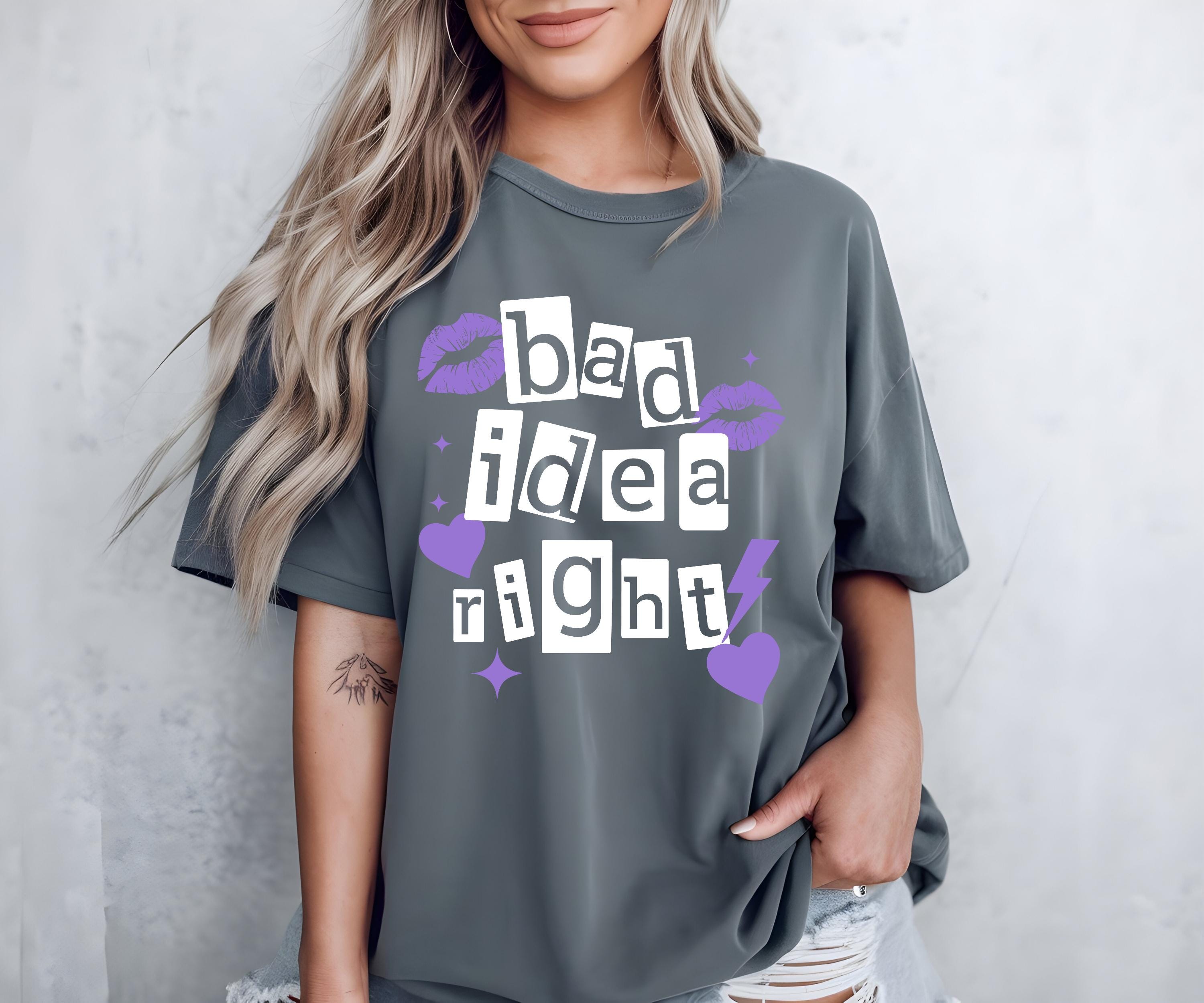 Celebrate your passion for Olivia Rodrigo with this relaxed fit shirt, thoughtfully designed for fans who appreciate both comfort and style. Inspired by the iconic "Bad Idea Right" lyric, this vintage style tee is a perfect addition to any music lover's wardrobe, ideal for concert outings or casual everyday wear. Crafted from soft cotton and featuring fade-resistant print, it effortlessly combines fan apparel with lasting quality.