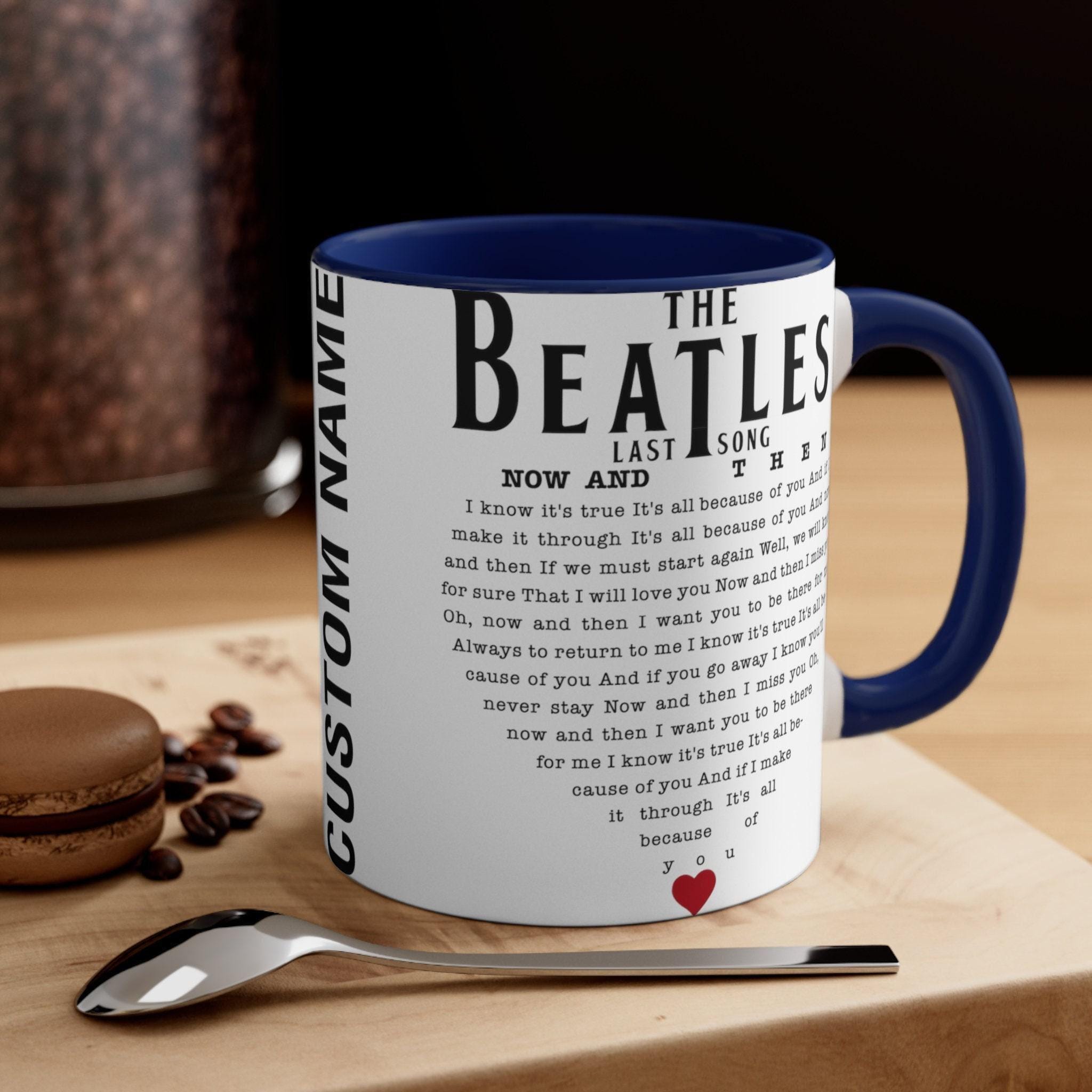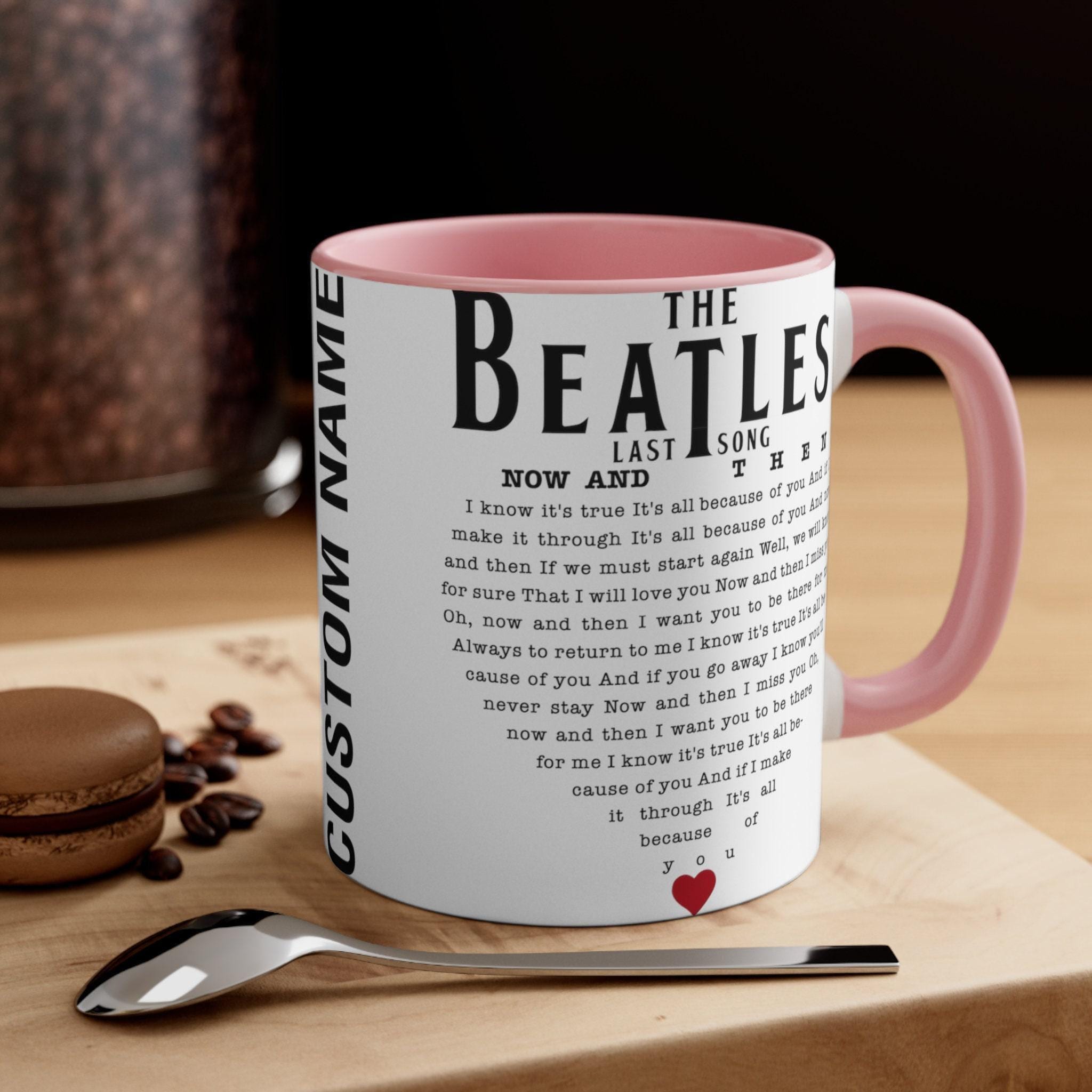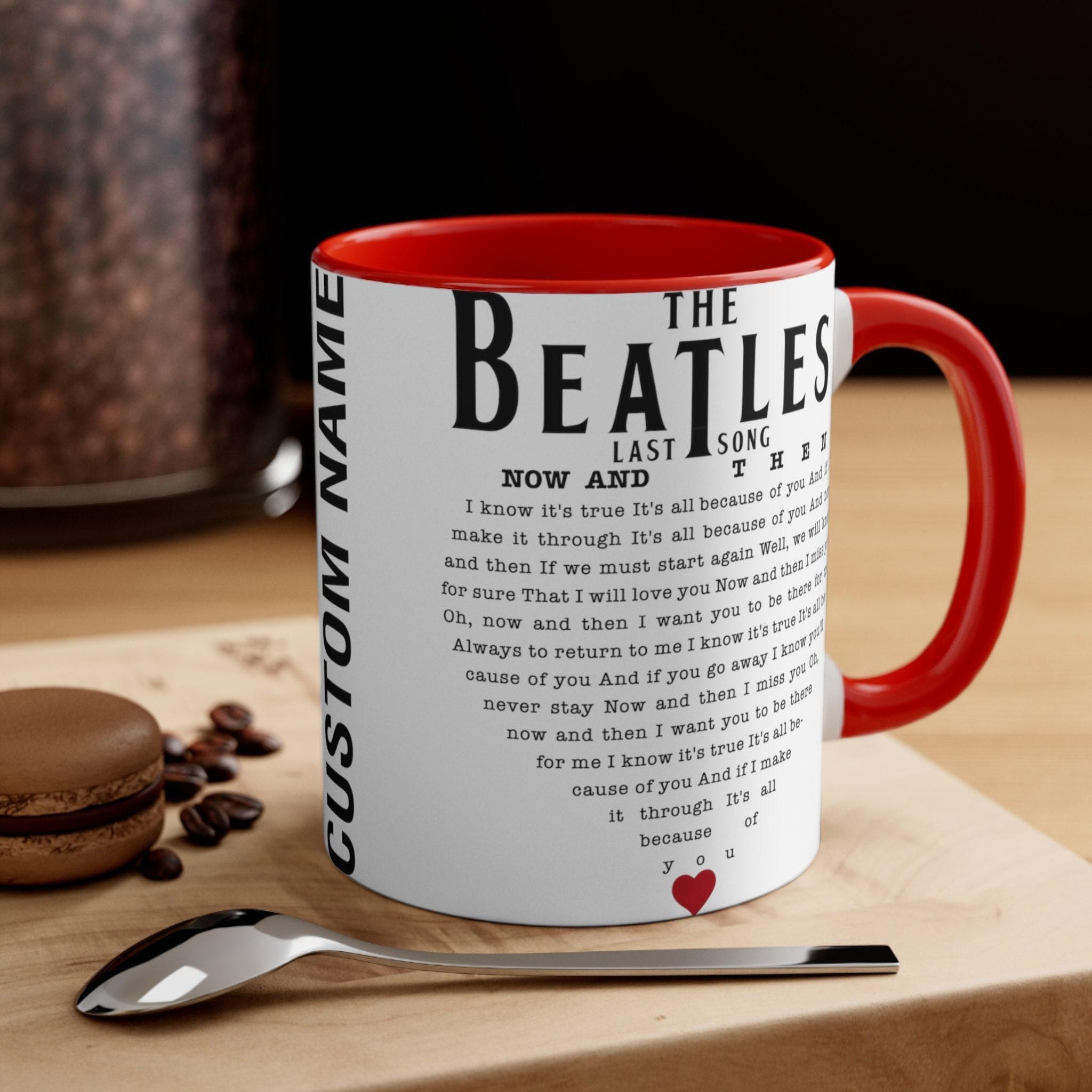 Step back into the golden era of rock with this stunning Beatles tribute mug, featuring the evocative Now and Then lyrics that resonate with music lovers everywhere. Perfect for any Beatles last song fan or Rock N Roll gift seeker, this ceramic coffee mug brings timeless melodies to your daily routine. Its two-tone design and colored handle add a splash of character, making each sip a celebration of legendary music.