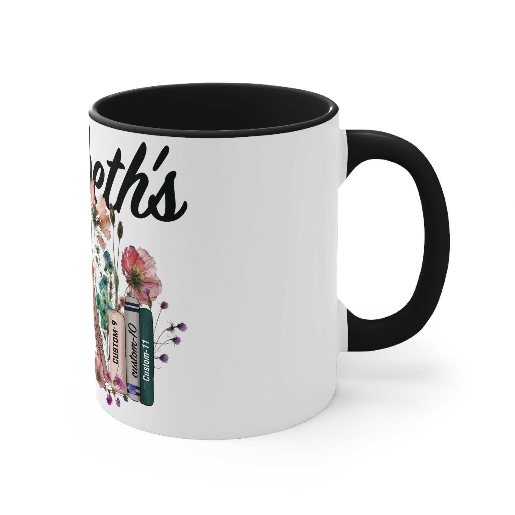 For the devoted reader, this personalized coffee mug beautifully blends bookshelf charm with boho floral elegance, making every coffee or tea break a moment of inspiration. Designed with the book lover in mind, this 11oz mug features a custom name option to add a personal touch, turning it into a unique gift or cherished keepsake. Whether curling up with a novel or sharing stories over a warm drink, this mug celebrates your love for literature and artistic flair.