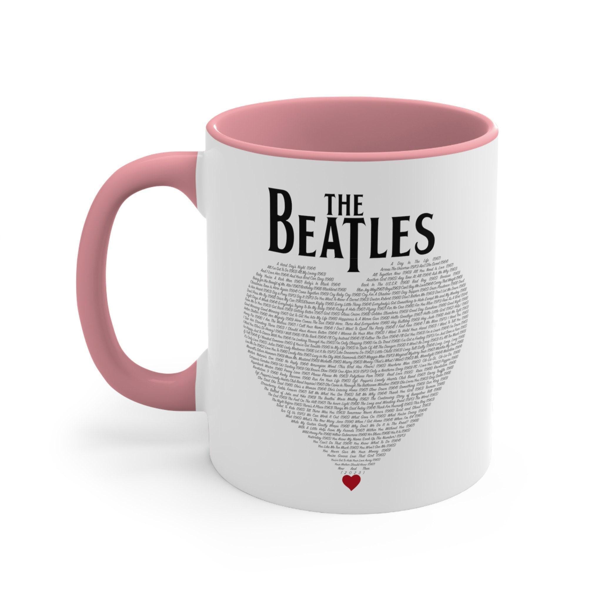 Start your day with a splash of nostalgia and vibrant color using this Beatles songs coffee mug, designed especially for music lovers who appreciate both style and substance. Featuring a durable ceramic build and dishwasher safe mug qualities, it combines practicality with a striking two-tone coffee mug design that brightens any morning brew. Whether you're a fan of the Fab Four or searching for the perfect fan gift for Beatles enthusiasts, this 11-ounce cup celebrates timeless tunes with vivid color print and a comfortable C-handle accent.