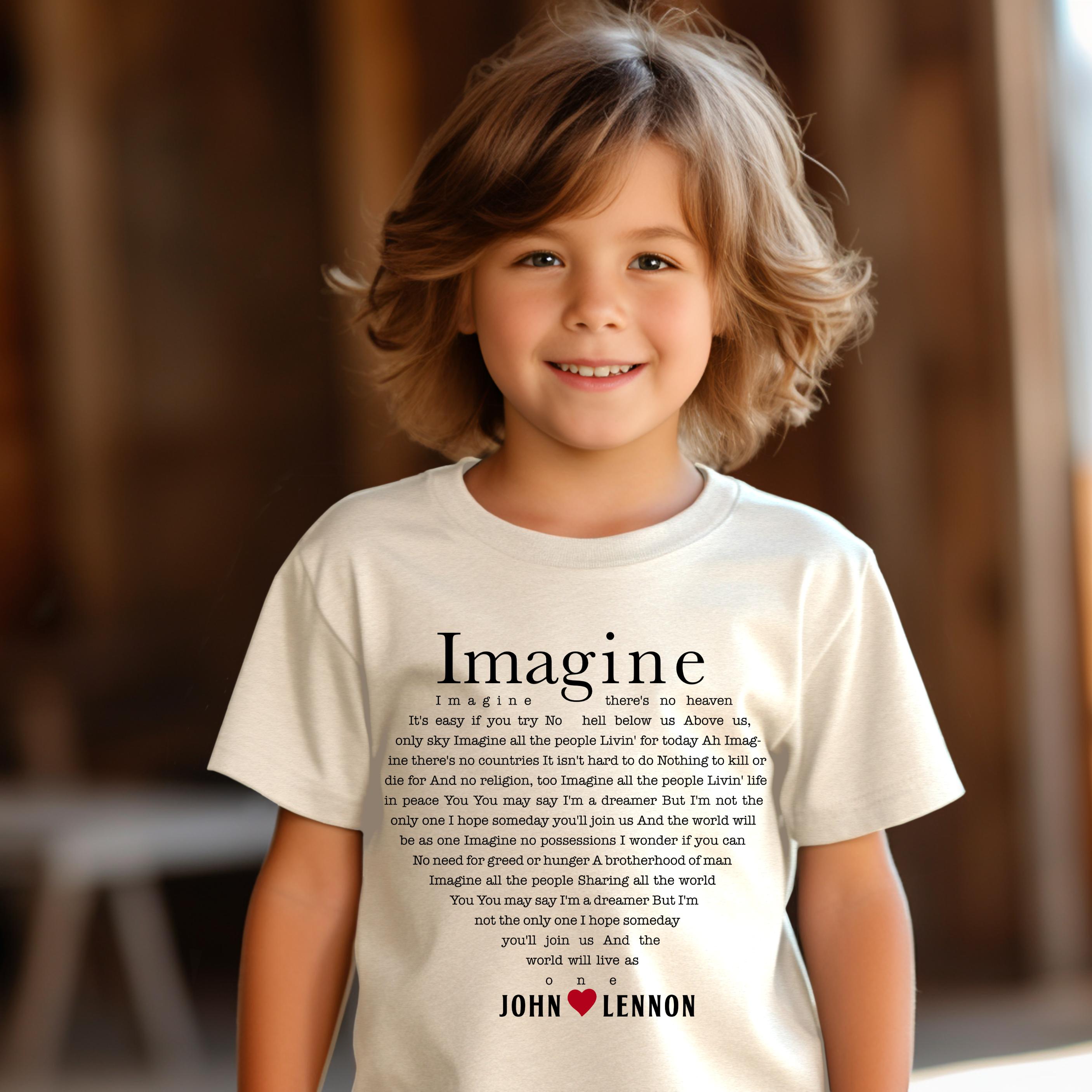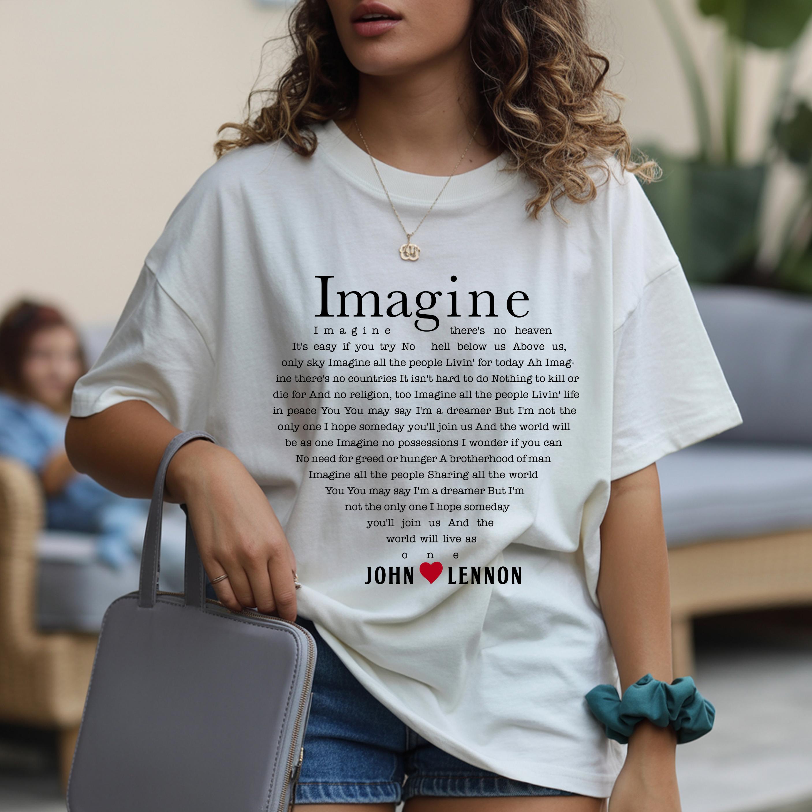 This shirt celebrates the spirit of “Imagine” — hope, peace, and creativity — through a minimal vintage design.