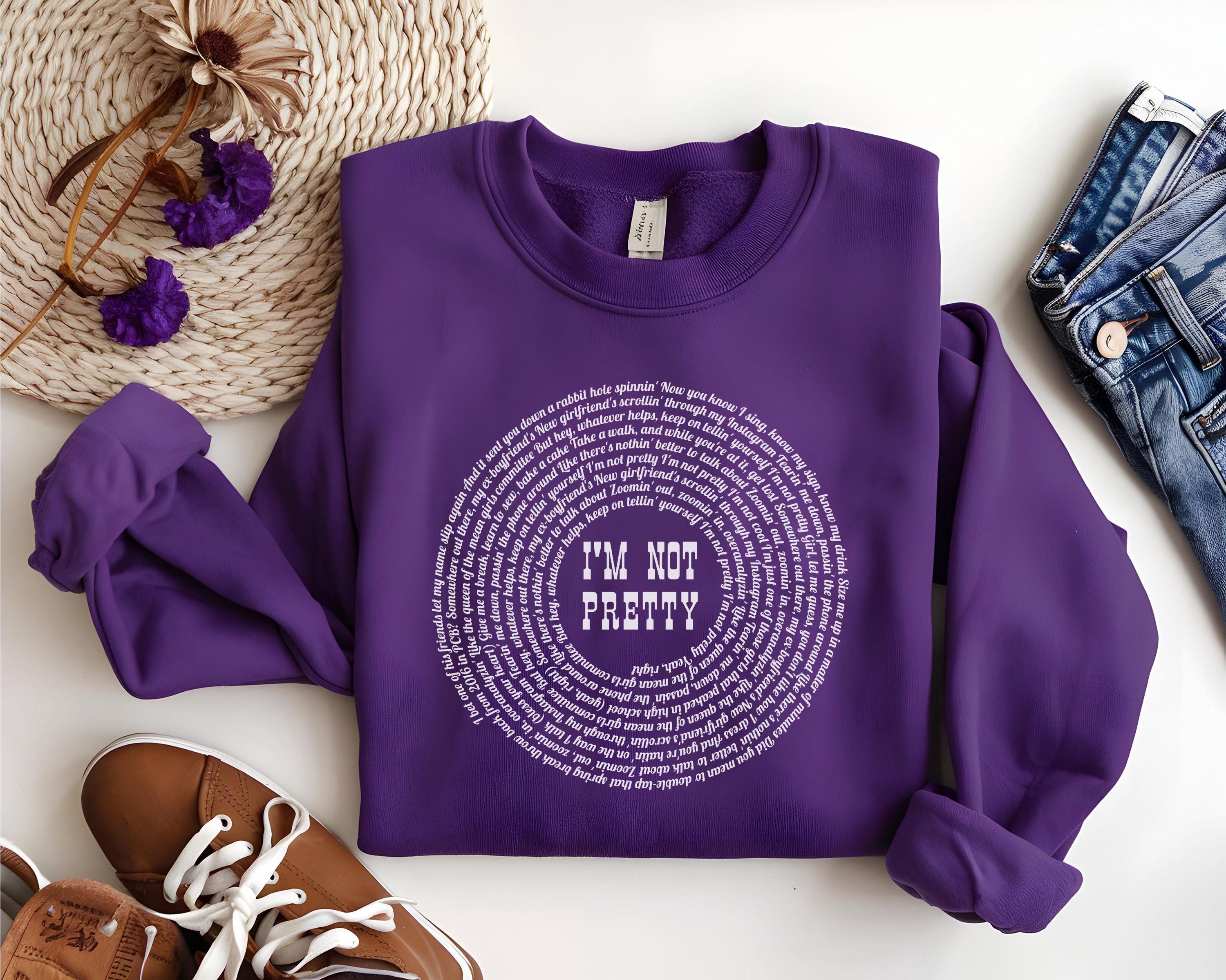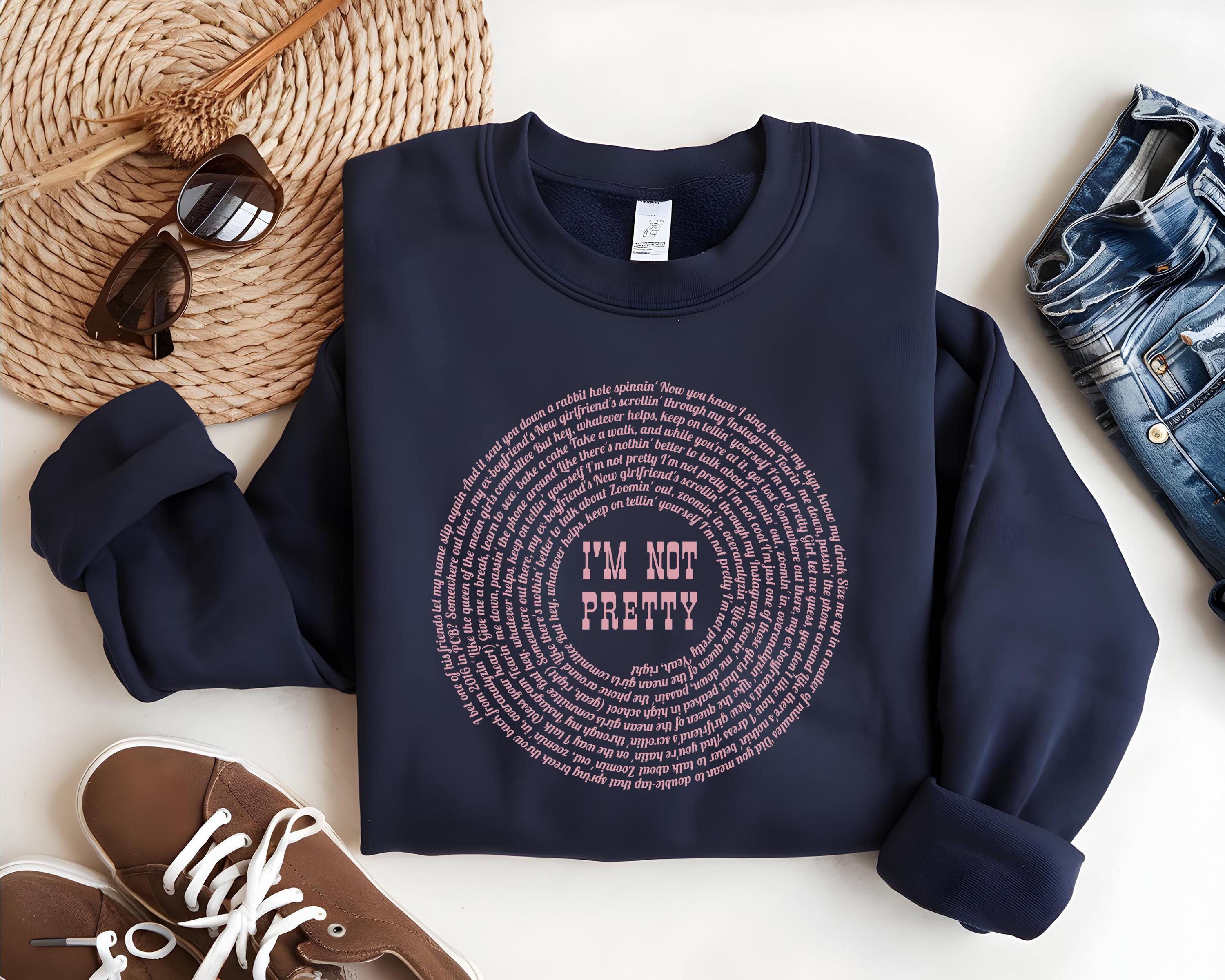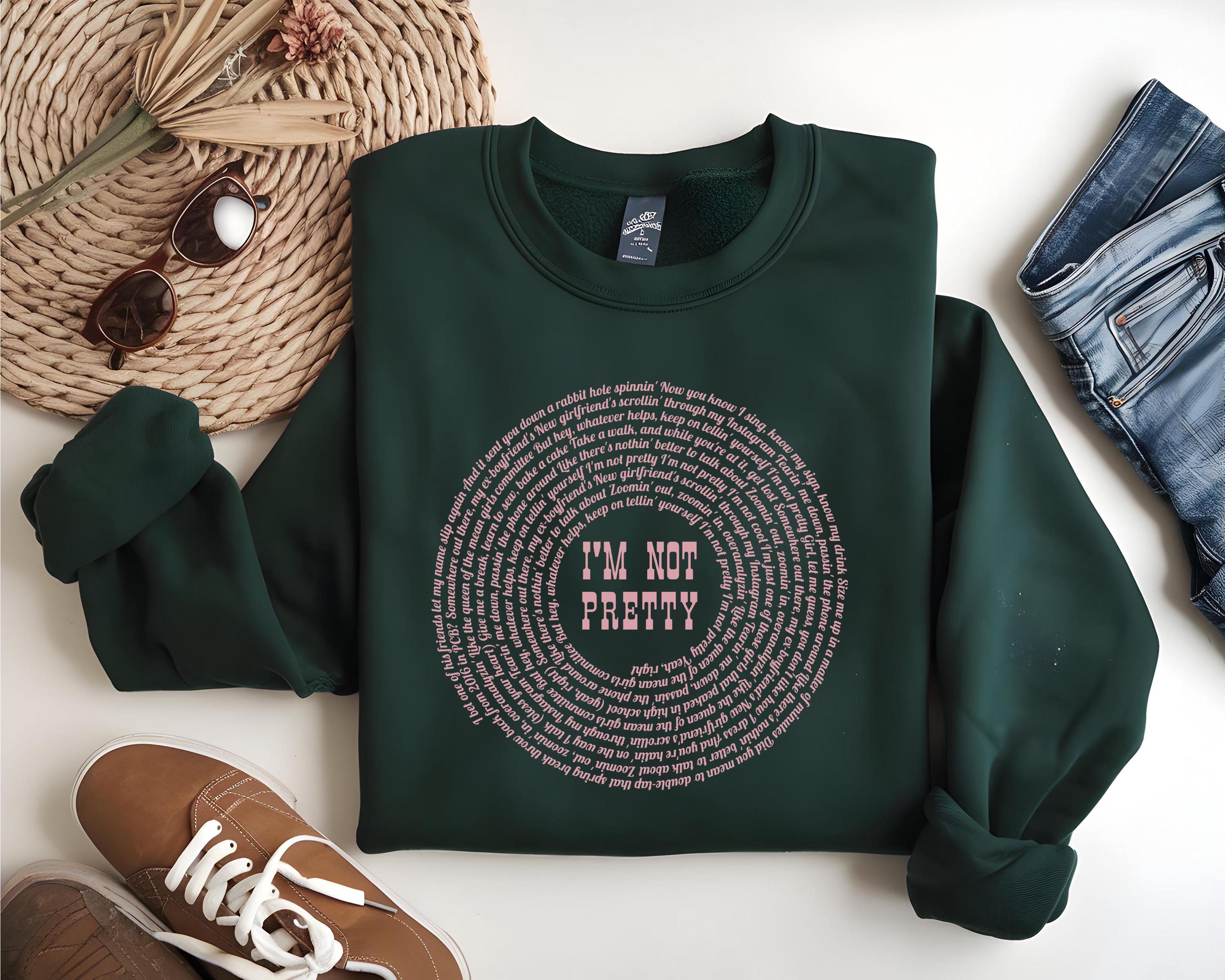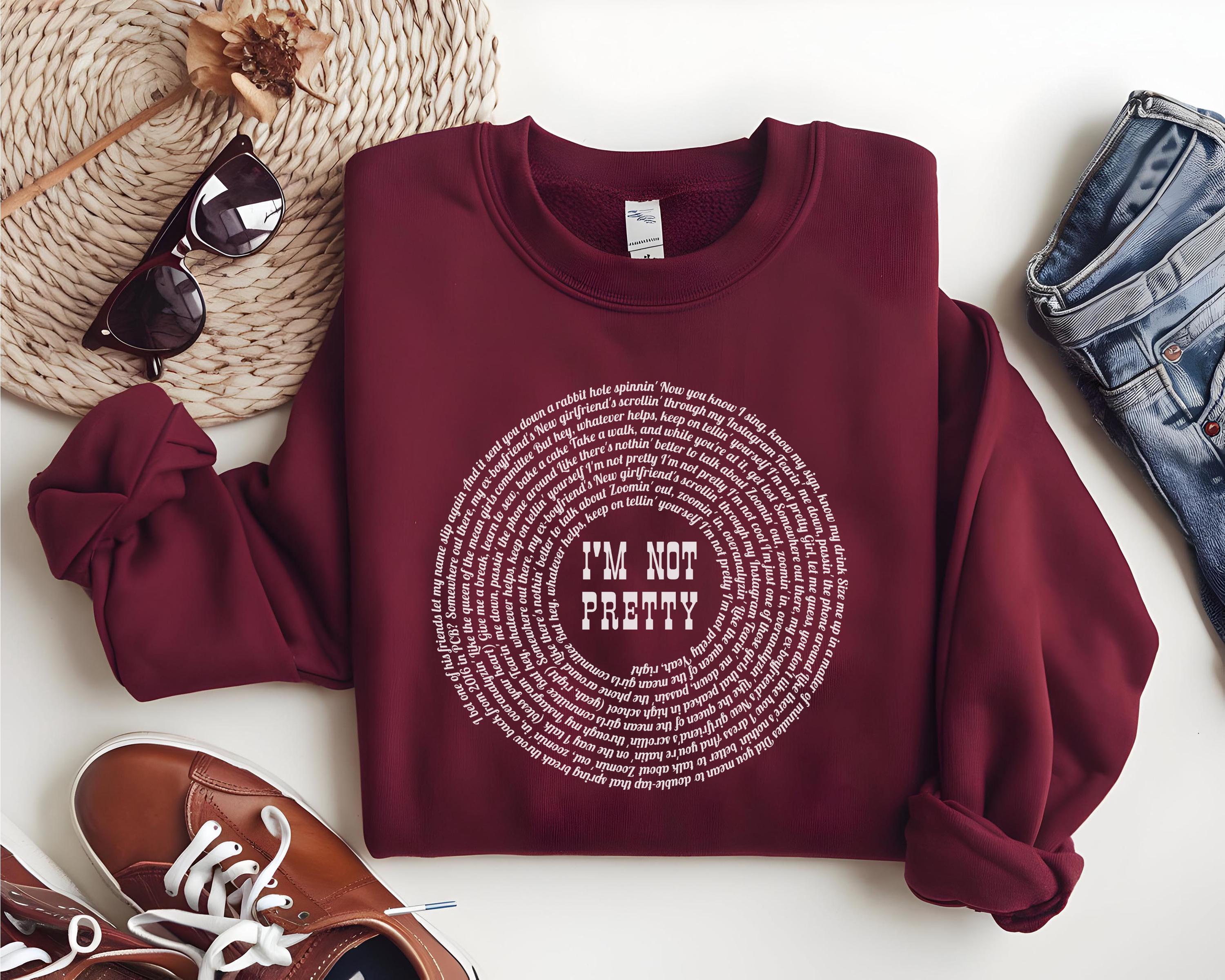 Stay cozy and stylish with this “I’m Not Pretty” inspired lyric sweatshirt, perfect for country music lovers and M. M. fans. Designed on the popular Gildan 18000 crewneck, this sweatshirt features a unique circular lyric design with bold center text for a trendy, aesthetic look.