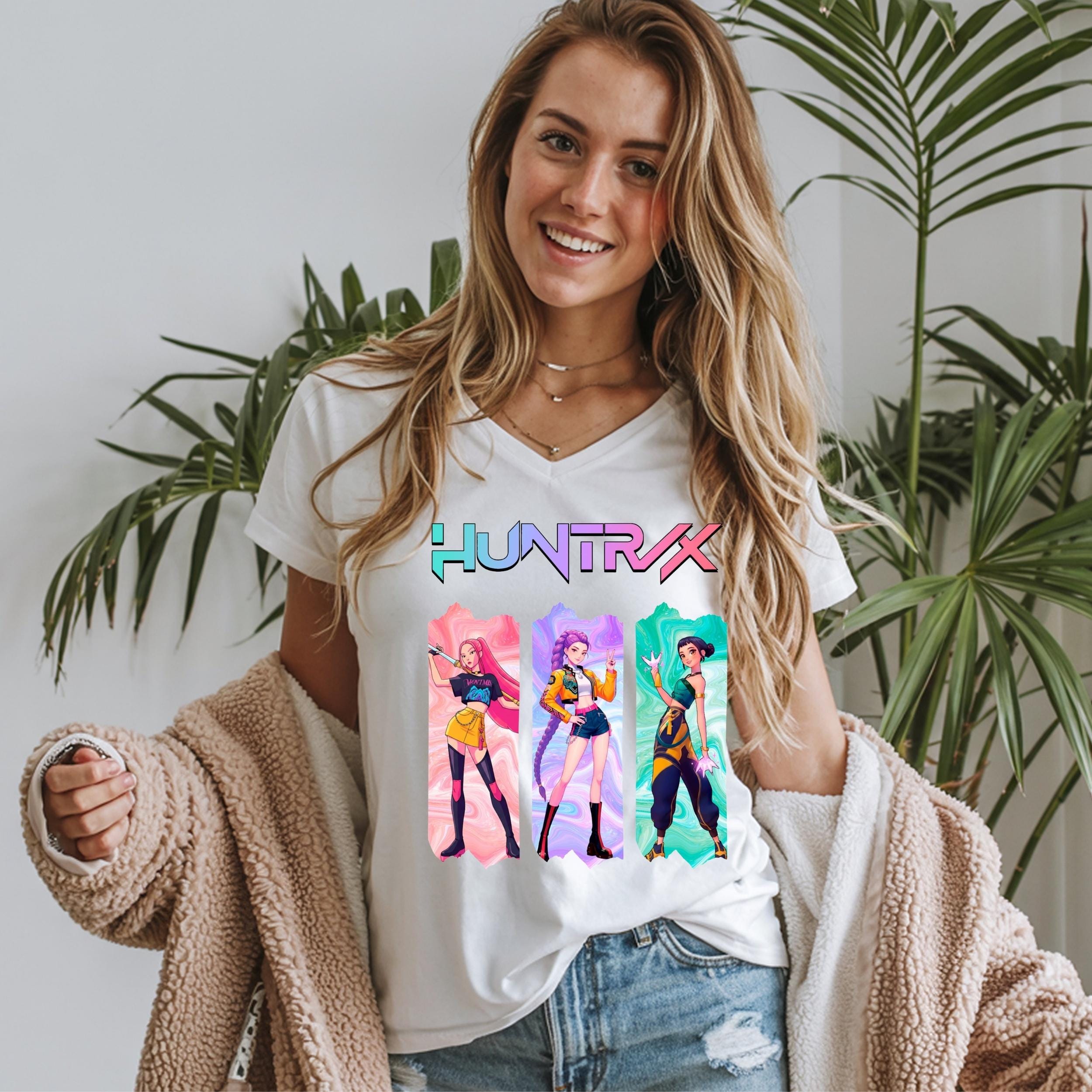 Immerse yourself in a unique blend of Kpop fandom and anime-inspired fantasy with this Huntrix Girls shirt, crafted for fans who cherish the Demon Hunters vibe. This inspired t shirt features dynamic graphics that capture the spirit of Mira, Rumi, and Joey, making it a perfect choice for anyone who loves cozy cotton blend apparel with a streetwear edge. Whether you're heading to a concert or an anime expo, this soft breathable tee lets you showcase your passion with style and comfort.