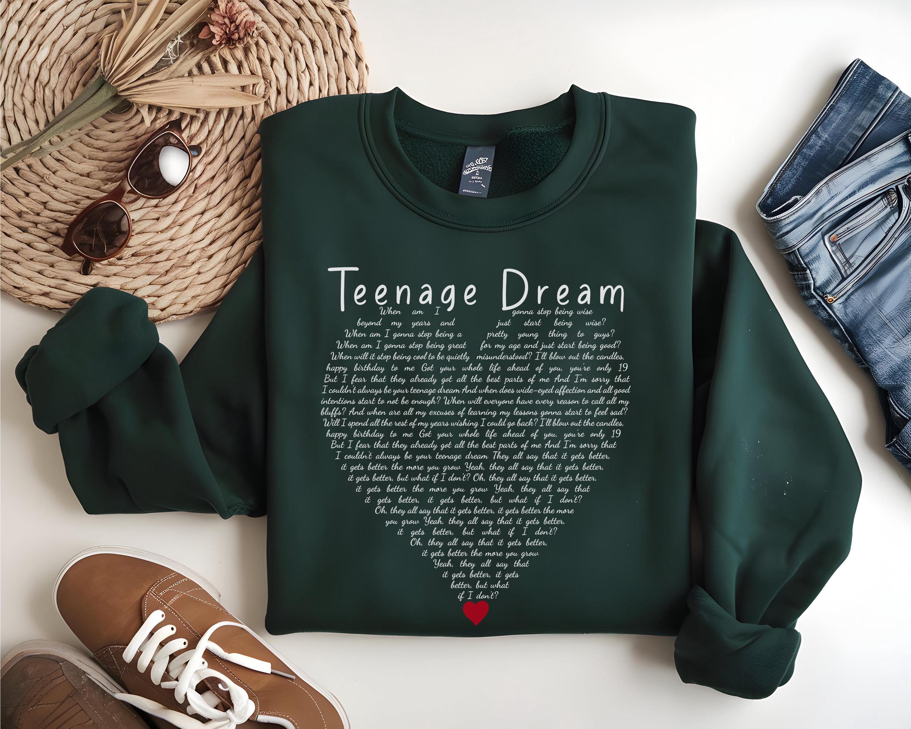 Celebrate your love for Olivia Rodrigo with this cozy youth crewneck featuring the heartfelt Teenage Dream lyric. Designed for pop music passion and youthful fans, this sweatshirt captures the emotion and spirit of her iconic songs in a soft, stylish way. Whether you're looking for youth fan apparel or a meaningful gift, this piece lets you wear your fandom with pride.
