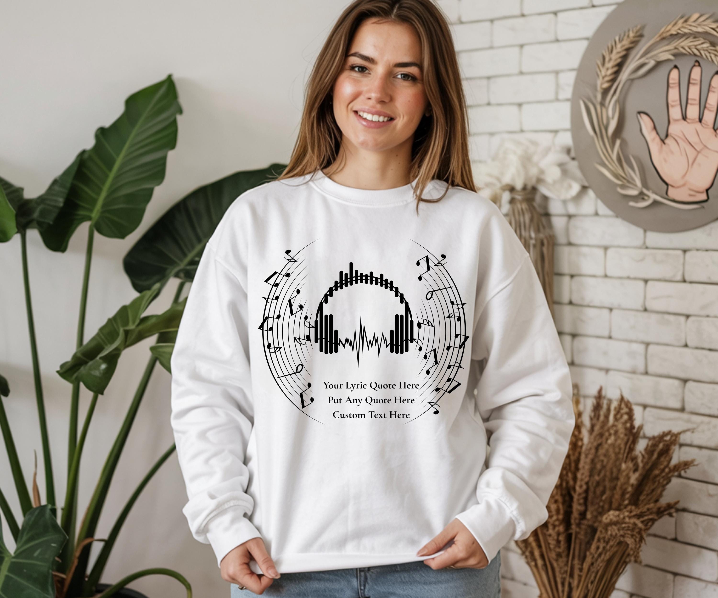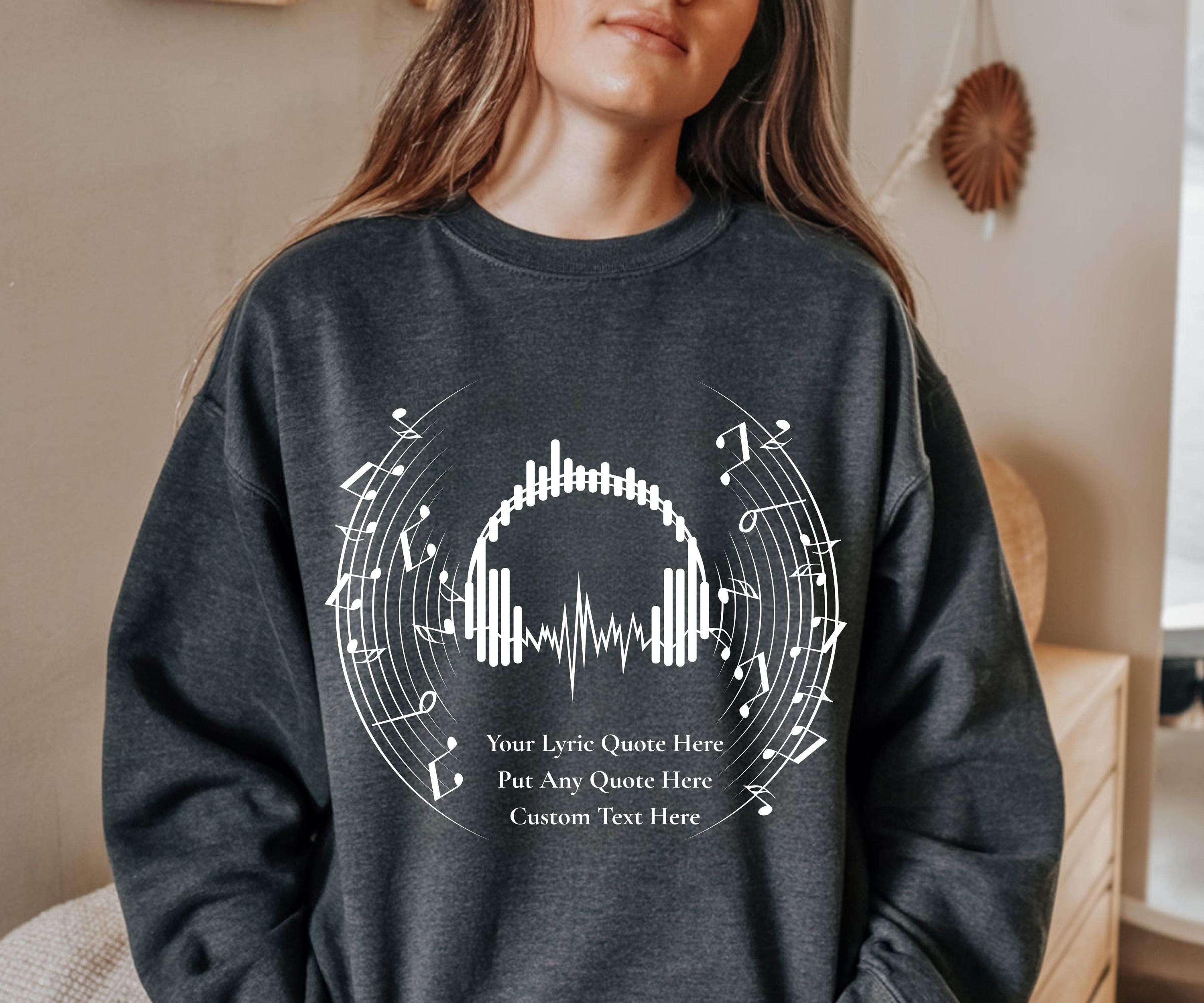 Wrap yourself in the cozy charm of this personalized sweatshirt, where vintage band apparel meets your favorite song lyrics. Crafted from a soft cotton blend, this unisex relaxed fit piece is designed to be your go-to cozy layering top, perfect for music lovers who cherish wearable music art. Each sweatshirt transforms meaningful lyrics or artist names into timeless style, making it a unique music lover gift.